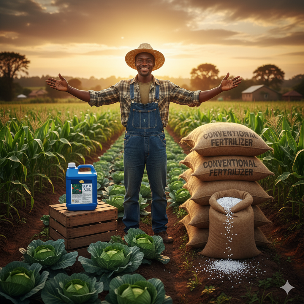 a few litres of Super Gro, my maize field grew stronger, greener, and healthier.