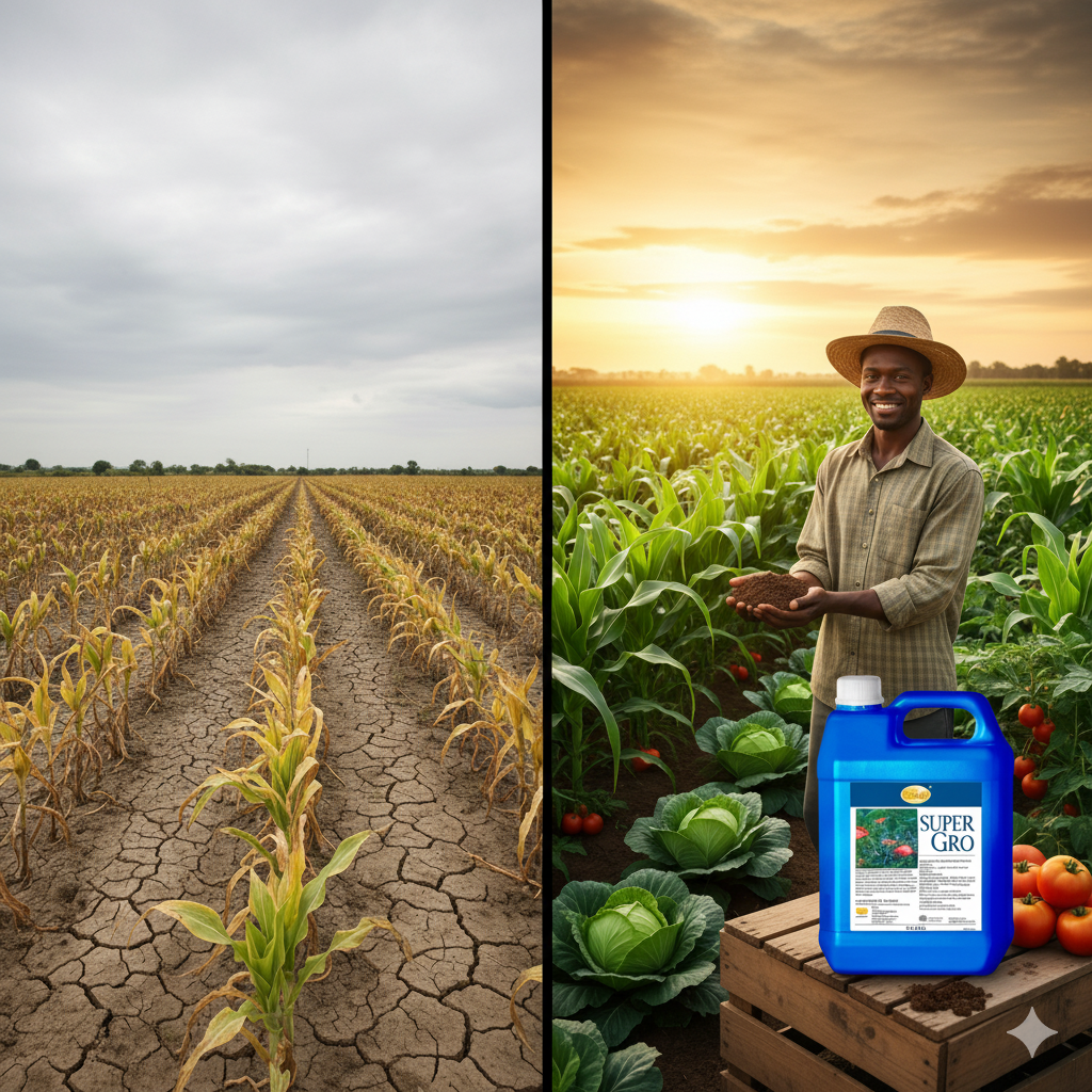 That’s why smart farmers — from smallholders in villages to large commercial farms and peri-urban vegetable growers — are turning to a natural, proven solution. With just a few drops of Super Gro, they are transforming: